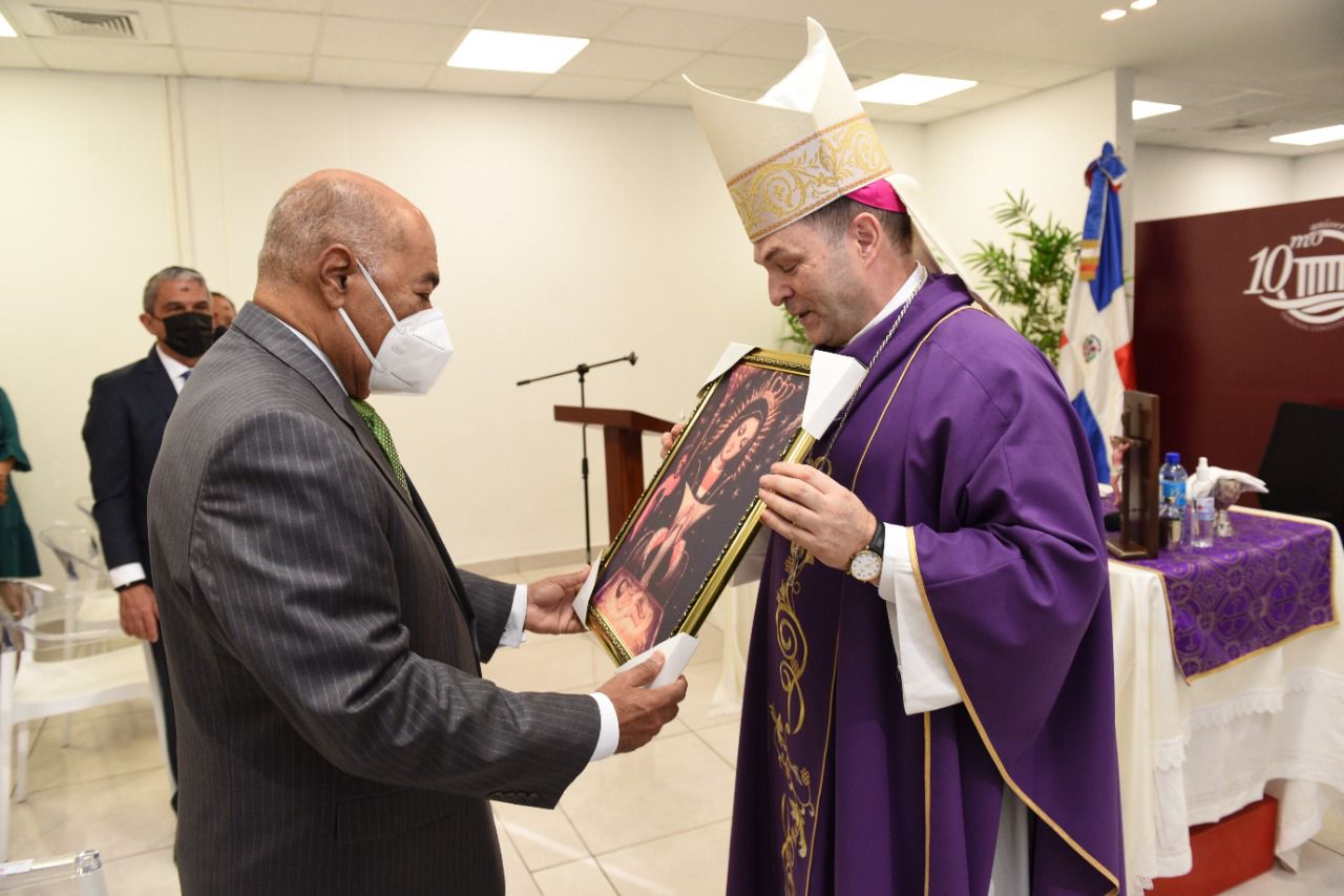 Al concluir la misa, monseñor Berzosa Martínez entregó un cuadro con la Virgen de la Altagracia al magistrado Ray Guevara, en representación del Pleno.